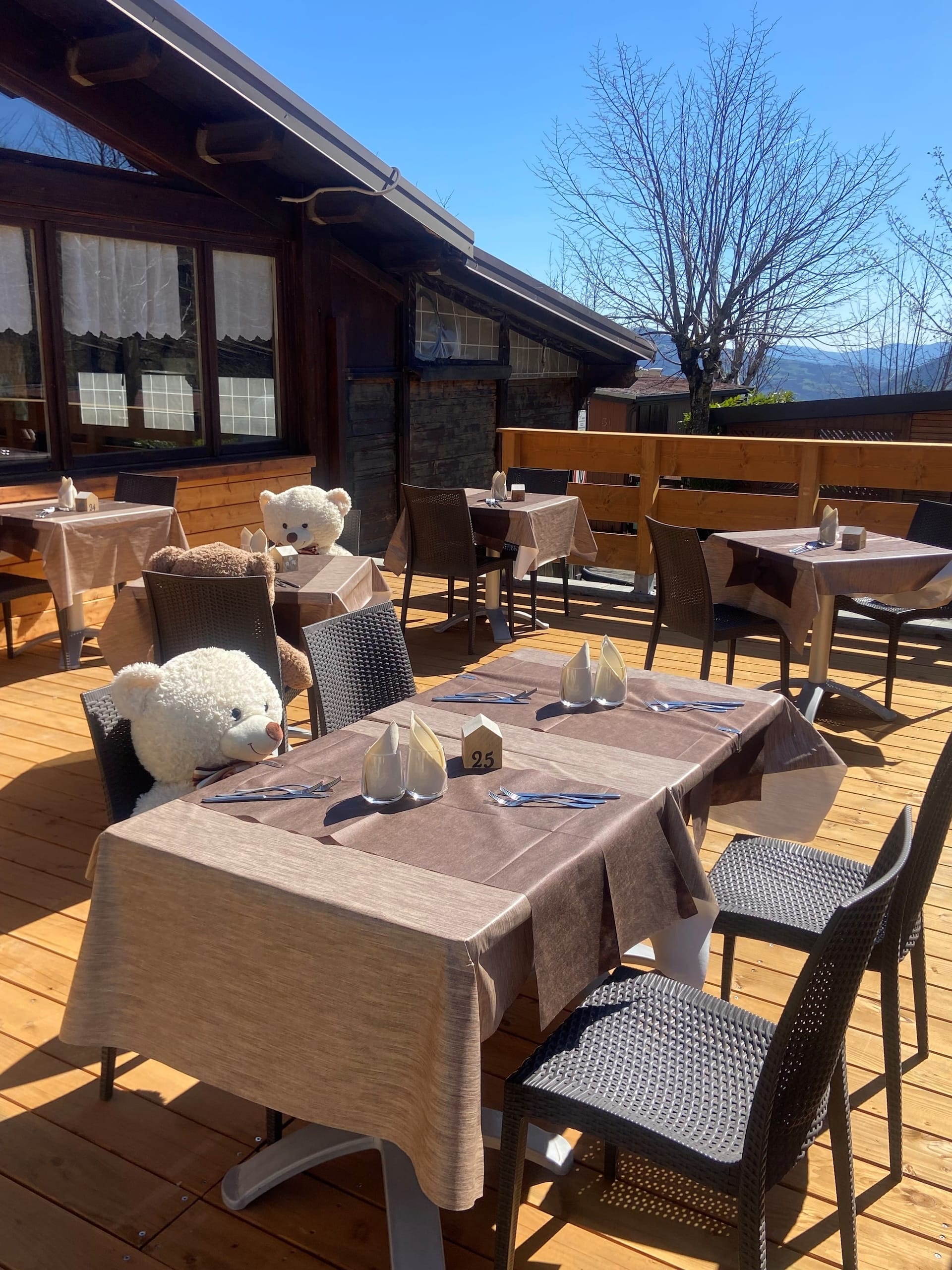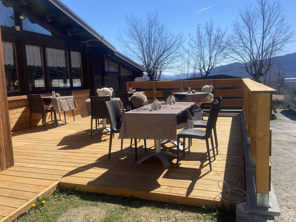 Durante la stagione estiva, la nostra terrazza esterna in legno ti aspetta: il luogo perfetto per una cena all’aria aperta o per sorseggiare un calice di Lambrusco ammirando il cielo stellato del Cimone.